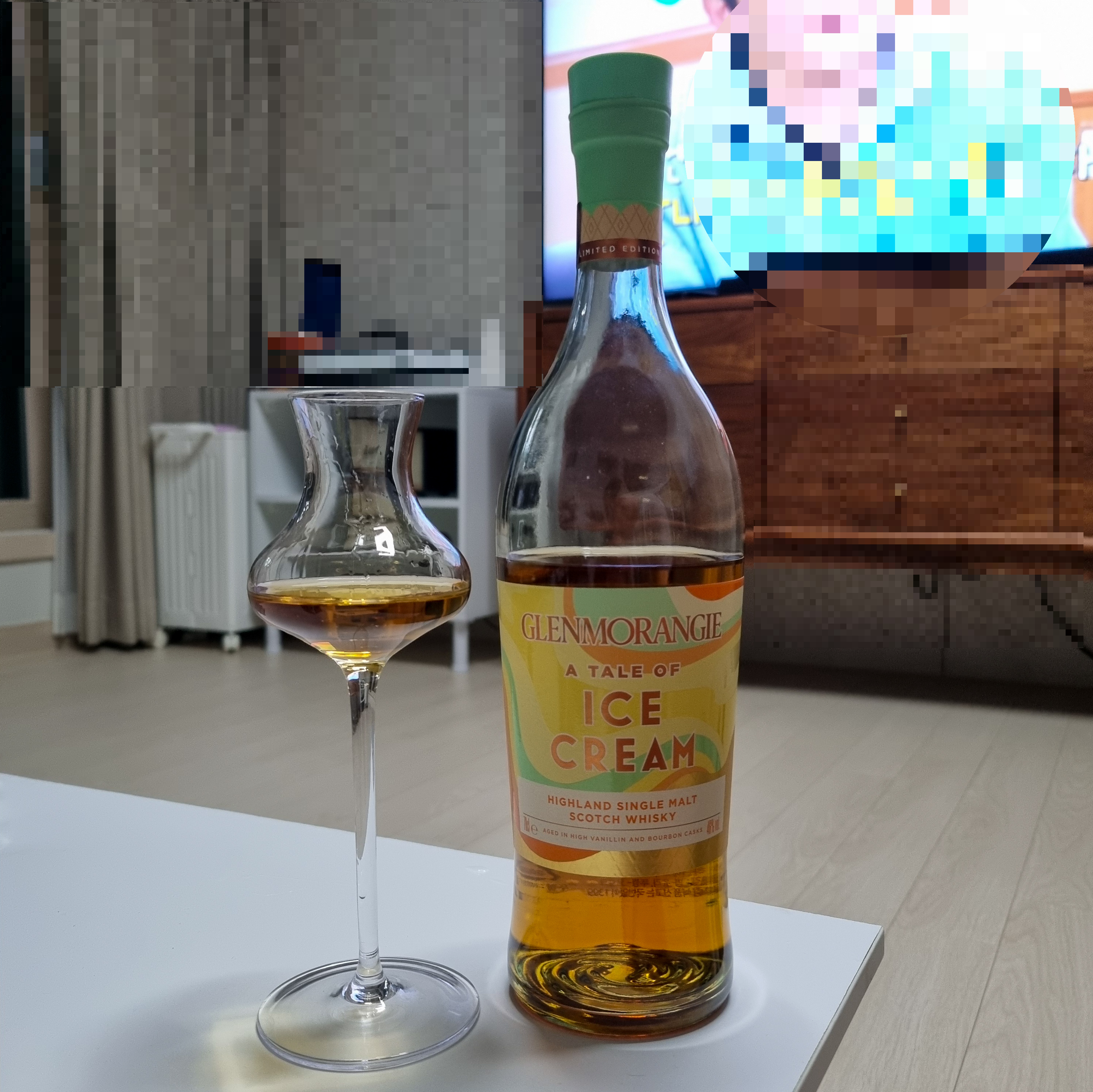 민트초코 아이스크림을 닮은 코르크, 글렌모렌지 특유의 곡선형 병, 알록달록한 라벨까지.