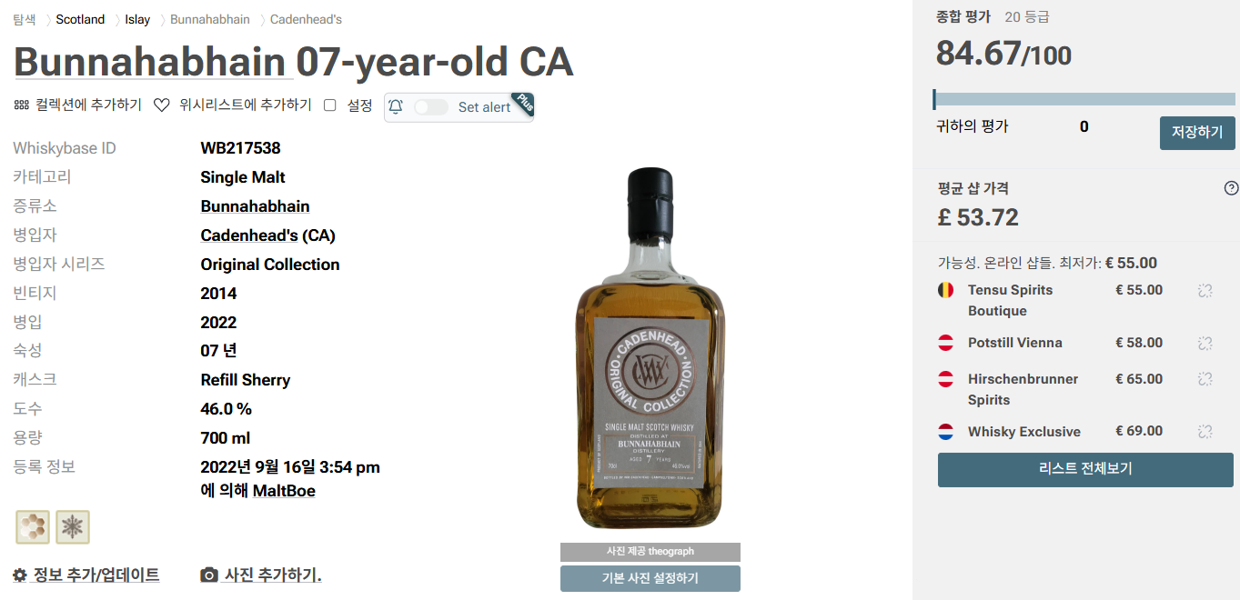 지인의 술장에서 발견한 카덴헤드의 부나하벤 7년 숙성제품!