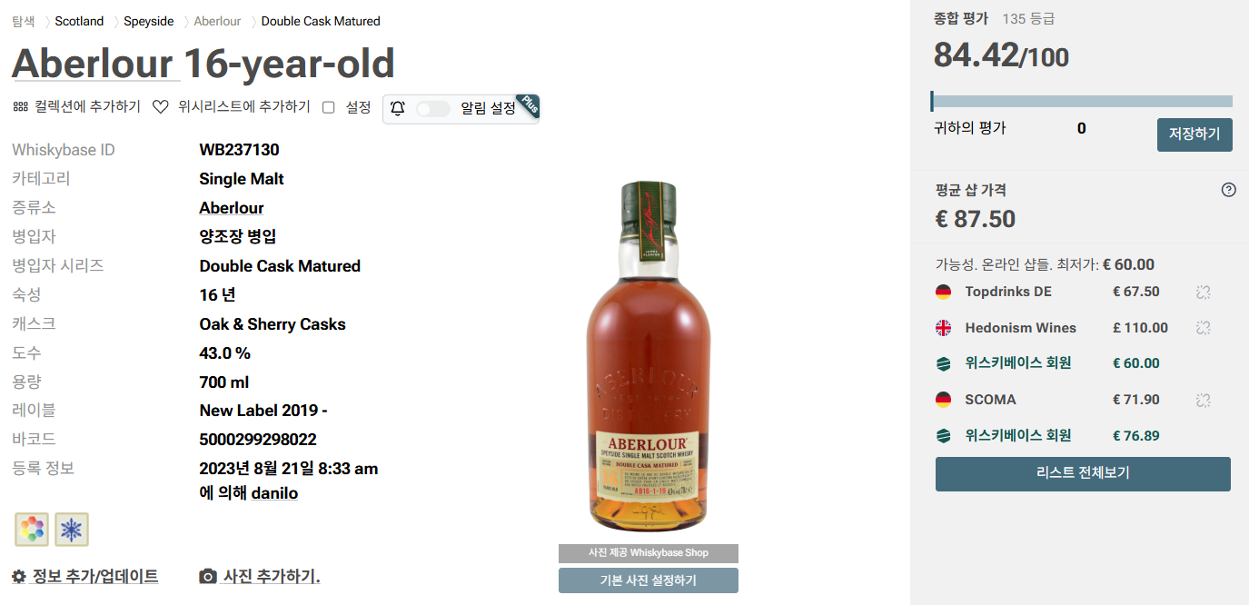 • 브랜드 / 병입자: Aberlour / Distillery Bottling